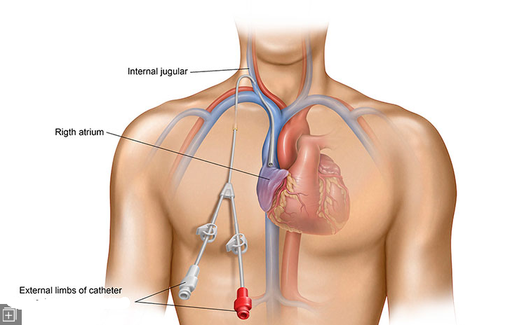 置管途径包括颈内静脉(常用)、颈外静脉(有凝血功能障碍者)、锁骨下静脉、股静脉。